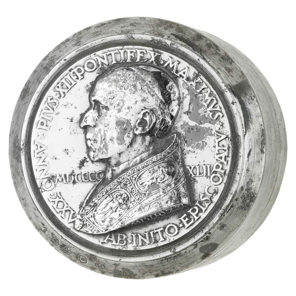 P Pius XII Pontifex Maximus Anno XXV Ab Inito Episcopatu MDCCXlII Charitas Iustitia 76 x 56 mm
