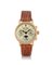 Cassa in oro rosa 18 kt con pulsanti ad oliva e carrura godronata. Quadrante argentato-champagne con indici e numero arabo applicati, contatore a 30 minuti e 12 ore, finestrelle per giorno e mese al 12, fasi luna al 6 e data periferica. Movimento a carica manuale. Quadrante e movimento firmati.