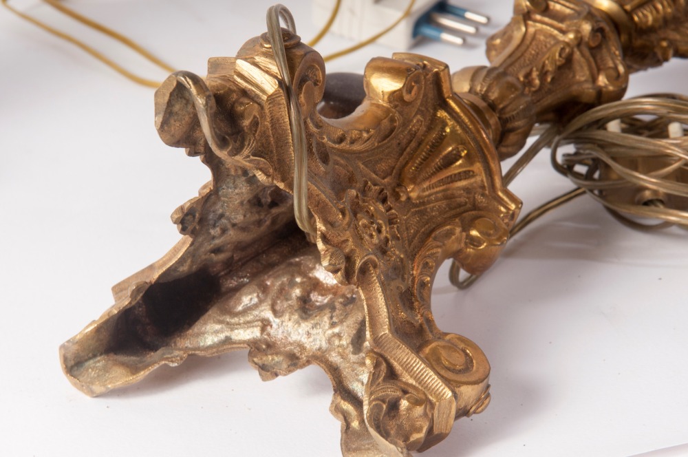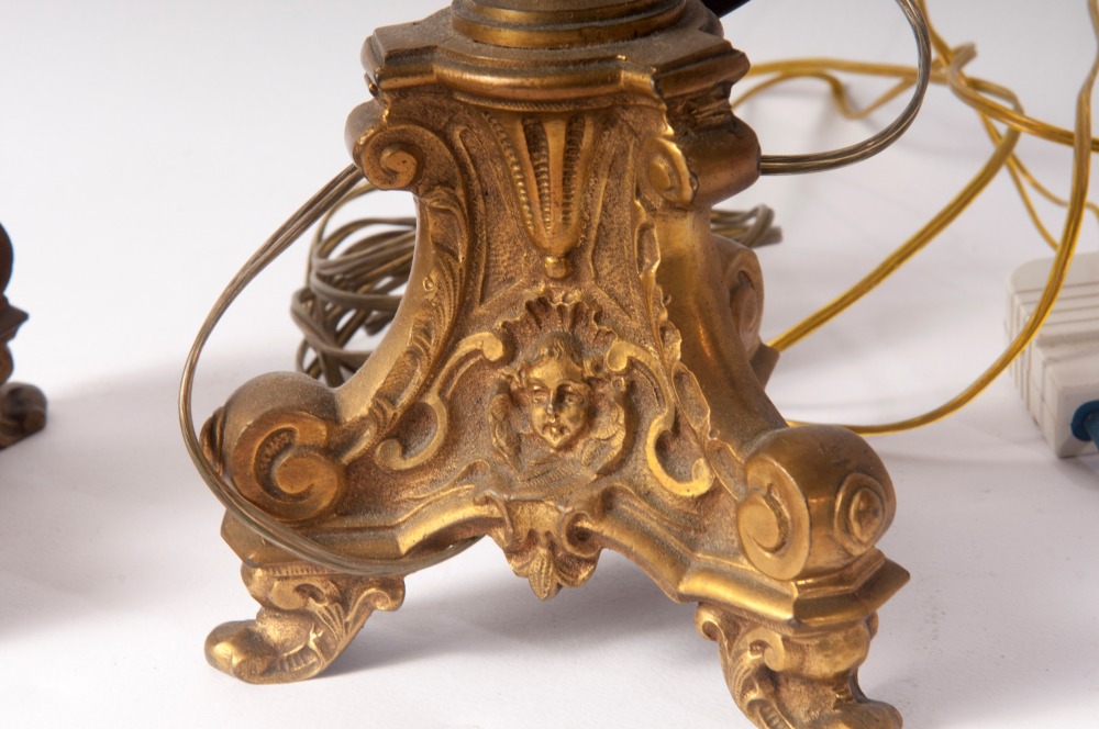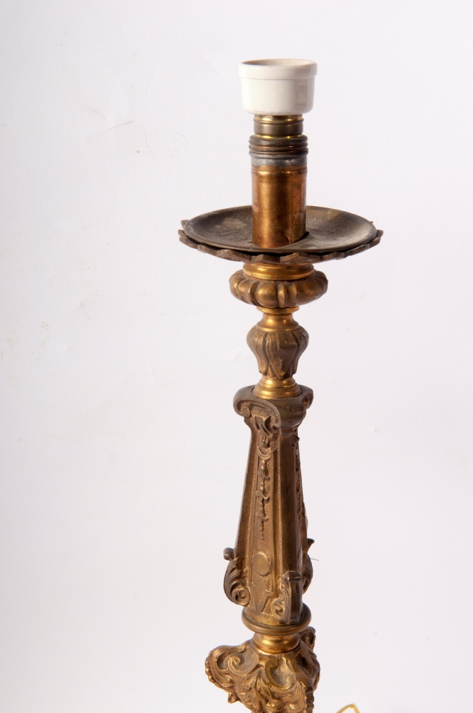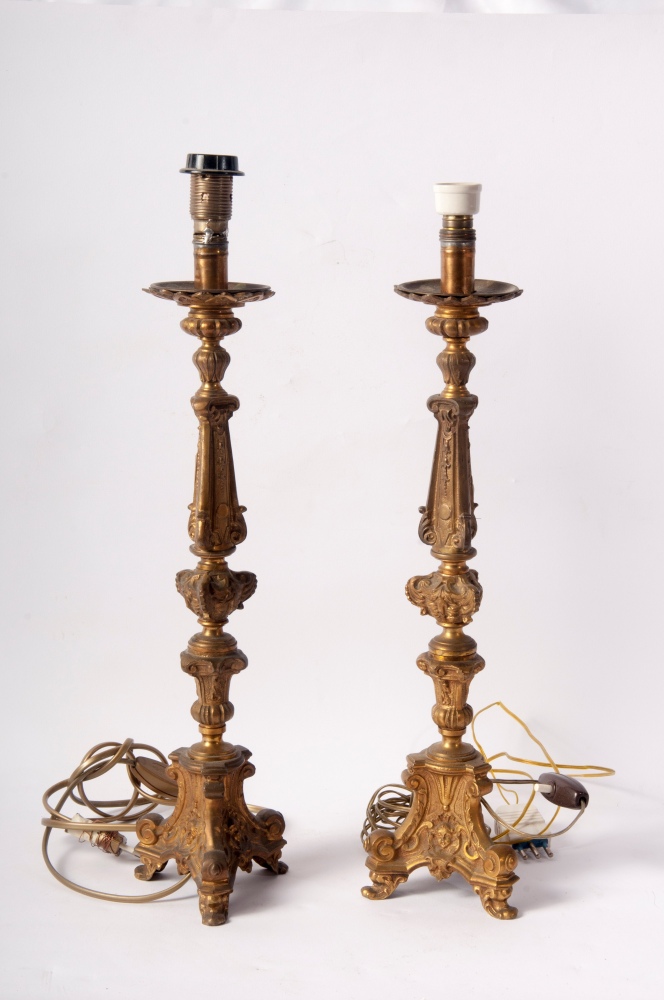 Lotto di due candelieri in ottone elettrificati prima metà XX secolo 42 x 10 cm