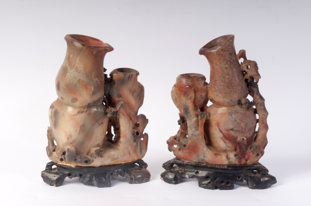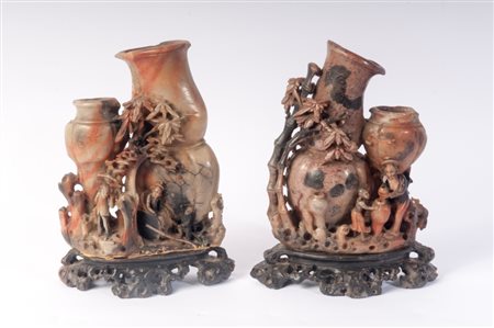 Coppia di potiches in pietra saponaria Cina, XIX secolo 24 x 17,5 x 8 cm