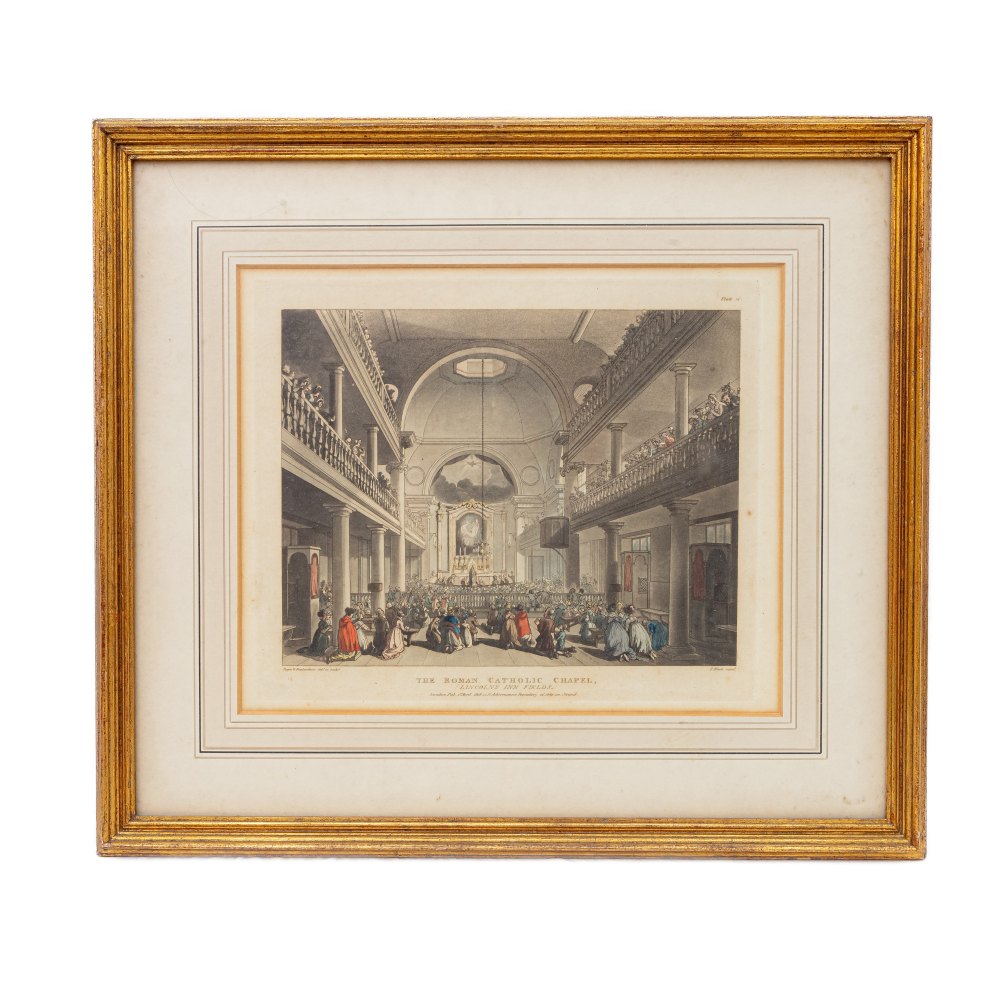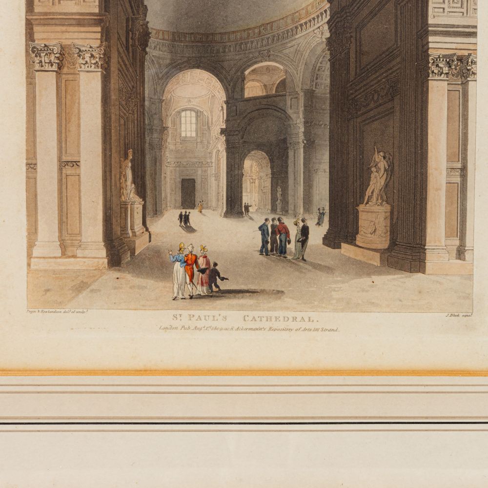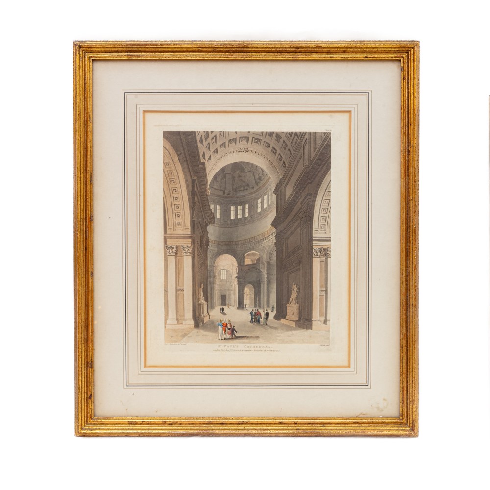 Lotto di quattro multipli su carta con vedute d'interni fine XIX secolo inizi XX secolo