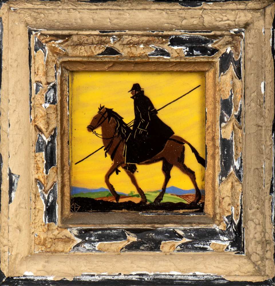 ENEA ANTONELLI (Cervia, 1887 - Marino Laziale , 1951) Il buttero Fine anni 1920 Ceramica policroma 10 x 10 cm