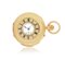 Tripla cassa ad occhio di bue in oro giallo 18 kt con numeri romani su lunetta in smalto, leva laterale. Quadrante in smalto con numeri romani e secondi al 6. Movimento con scappamento ad ancora, suoneria a richiamo delle ore e dei quarti.