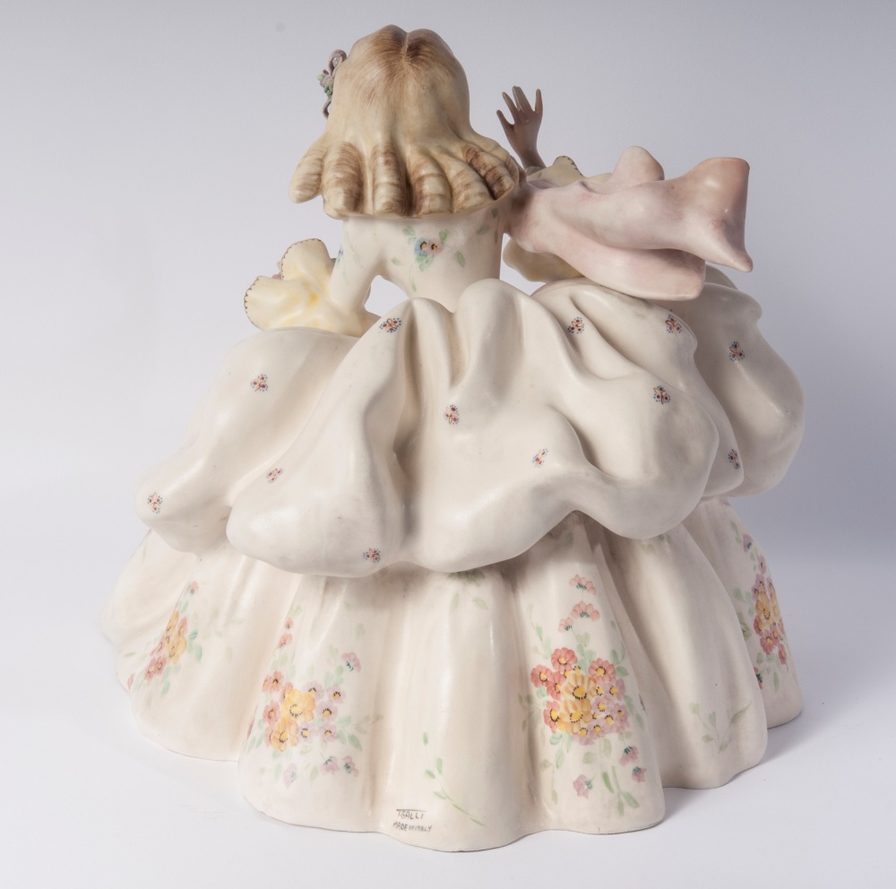 scultura a colaggio in ceramica policroma a tutto tondo.