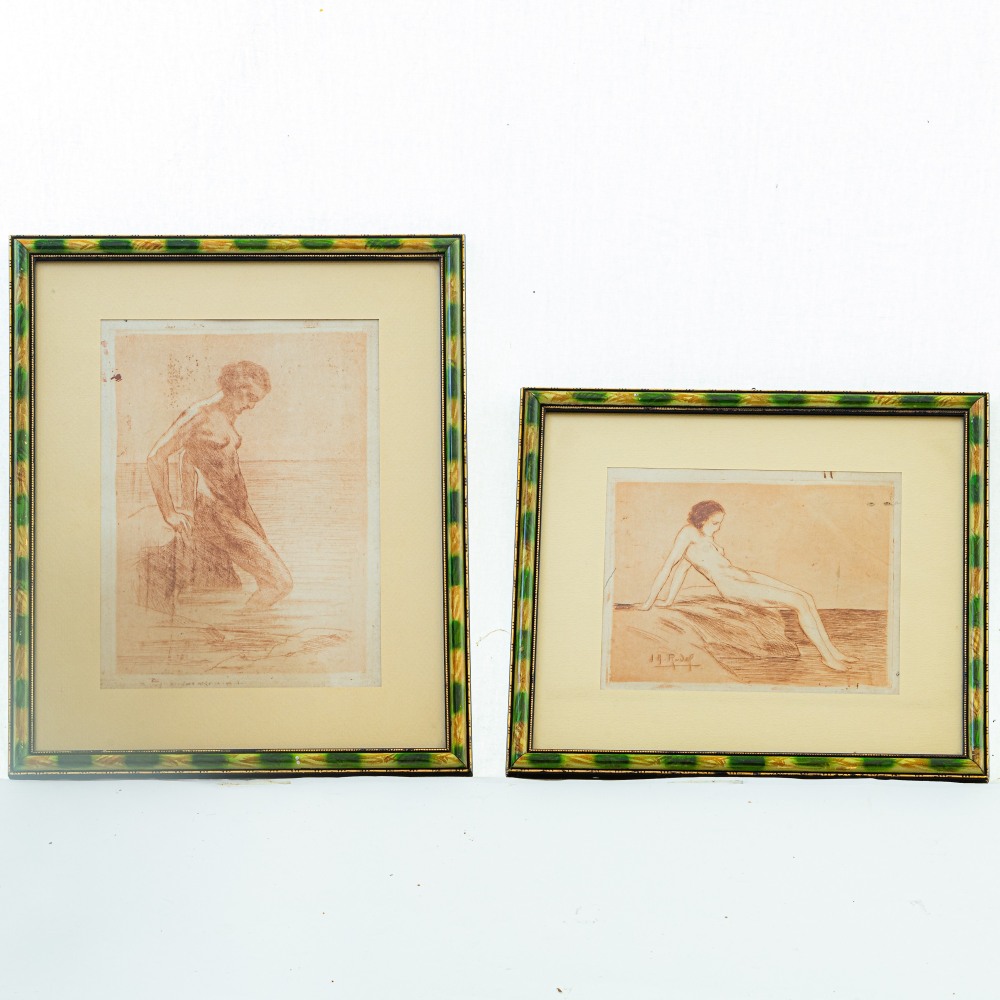Lotto di due nudi femminili, multipli su carta prima metà XX secolo 27 x 20 cm; 18 x 21 cm