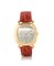 C. cushion-shaped, 18K yellow gold with fan lugs. D. silvered with applied indexes. M. manual winding. Dial, case and movement signed.