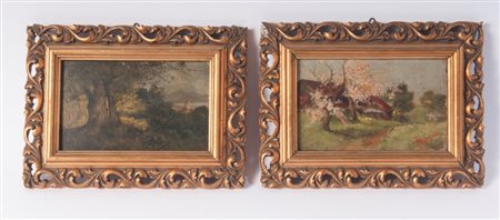 Lotto di due paesaggi prima metà XX secolo dipinti ad olio su cartone 10 x 16 cm