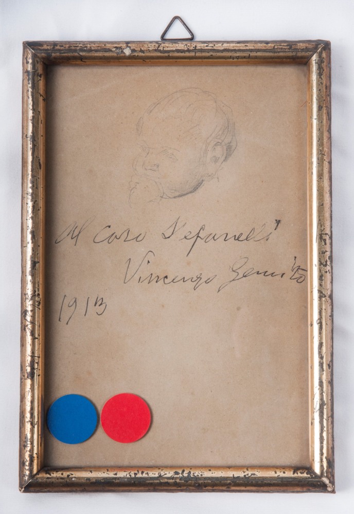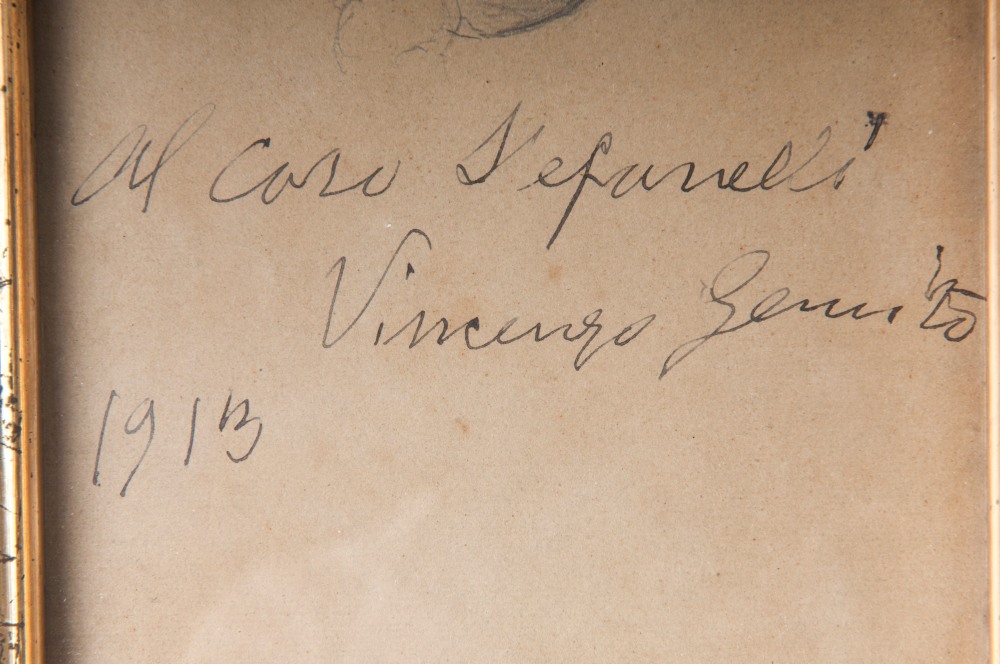 VINCENZO GEMITO (Napoli , 1852 - 1929) Testa di fanciullo 1913 matita su carta con dedica 16 x 10 cm