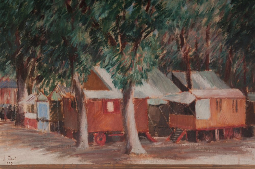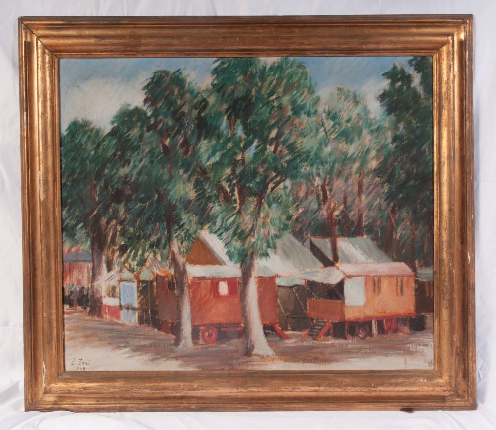 FRANCO DANI (1895 - 1981) Alla fiera 1929 dipinto ad olio su tela 65 x 77 cm