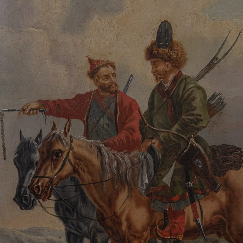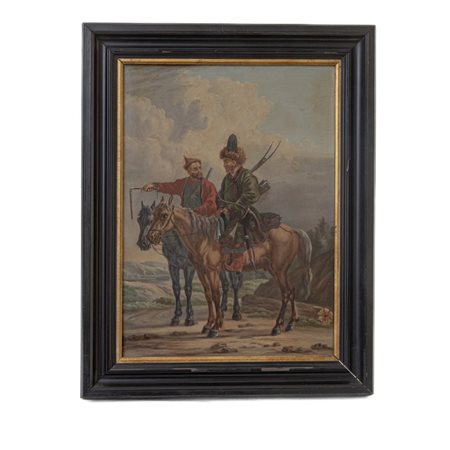 Cavalieri Mongoli fine XIX secolo inizi XX secolo dipinto olio su tavola 58,5 x 42,5 cm