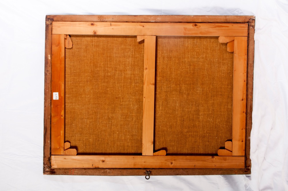 in cornice a lacca verde e crema.