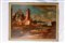 Veduta di marina con imbarcazioni e costruzioni inizio XX secolo dipinto olio tela 73 x 98 cm