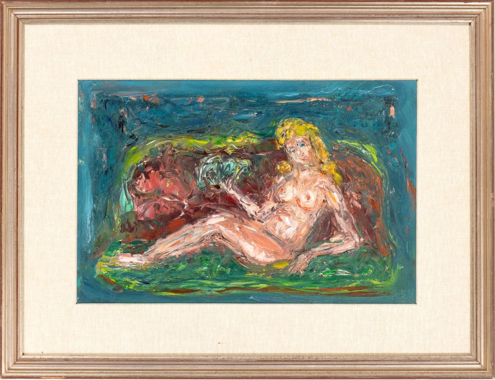 GIOVANNI STRADONE (Nola, 1911 - Roma, 1981) Nudino 1958 Olio su tavola 30 x 44 cm