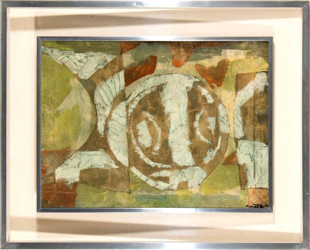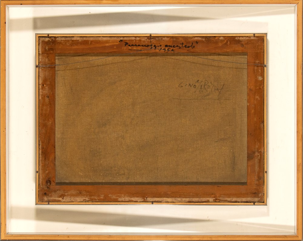 Firmato e datato in basso a destra: Gino Marotta, 56; firmato, titolato e datato al retro: Gino Marotta, Paesaggio ancestrale, 1956