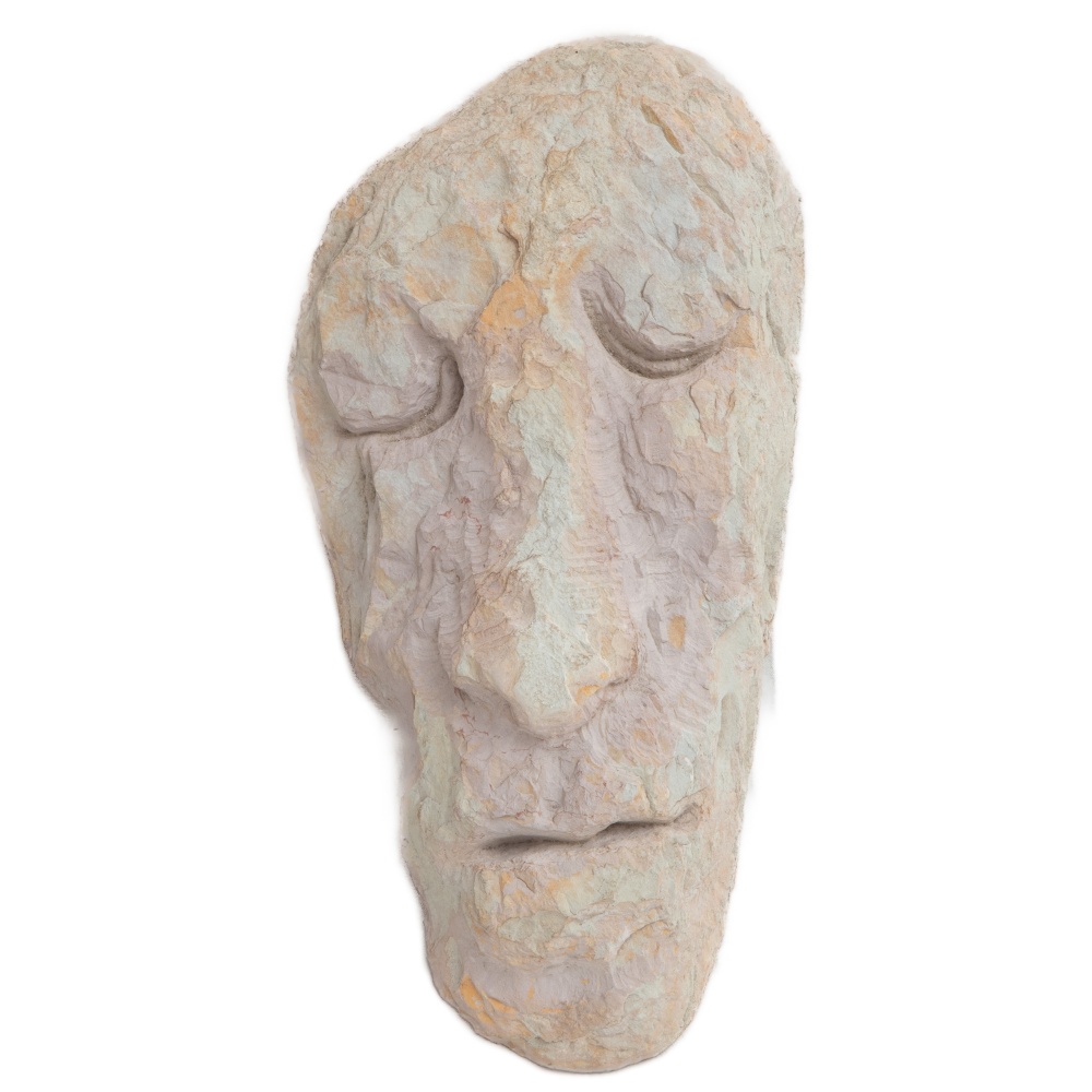 Volto, scultura in pietra rosa d'Assisi seconda metà XX secolo 40 x 20 x 6 cm