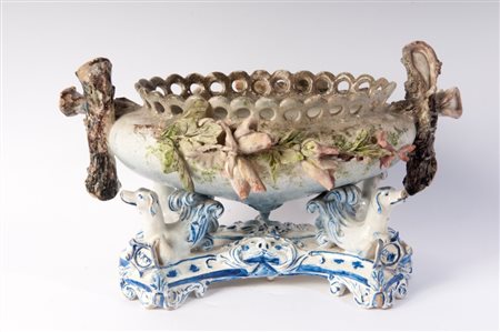 Centrotavola in ceramica policroma inizi XX secolo 24 x 42 x 26 cm