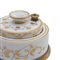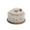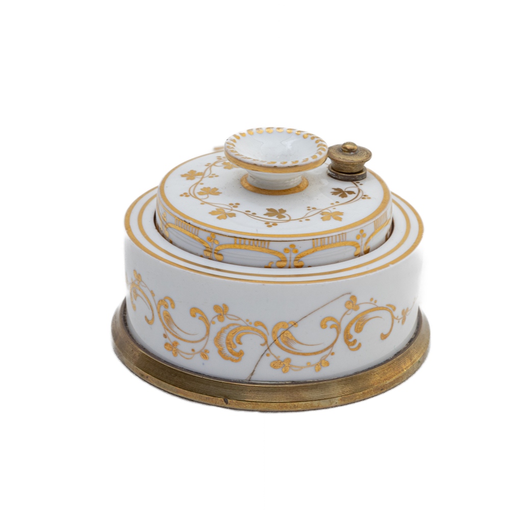 in porcellana bianca di forma rotonda a piramide con decori floreali in oro zecchino, base in ottone.