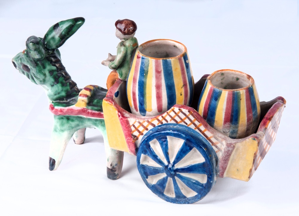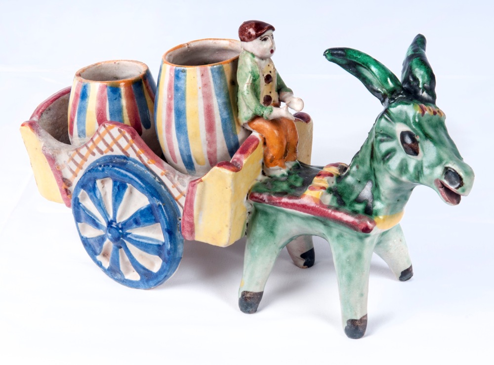 Somarello con carretto e barili Vietri, metà XX secolo 17 x 30 x 10,5 cm