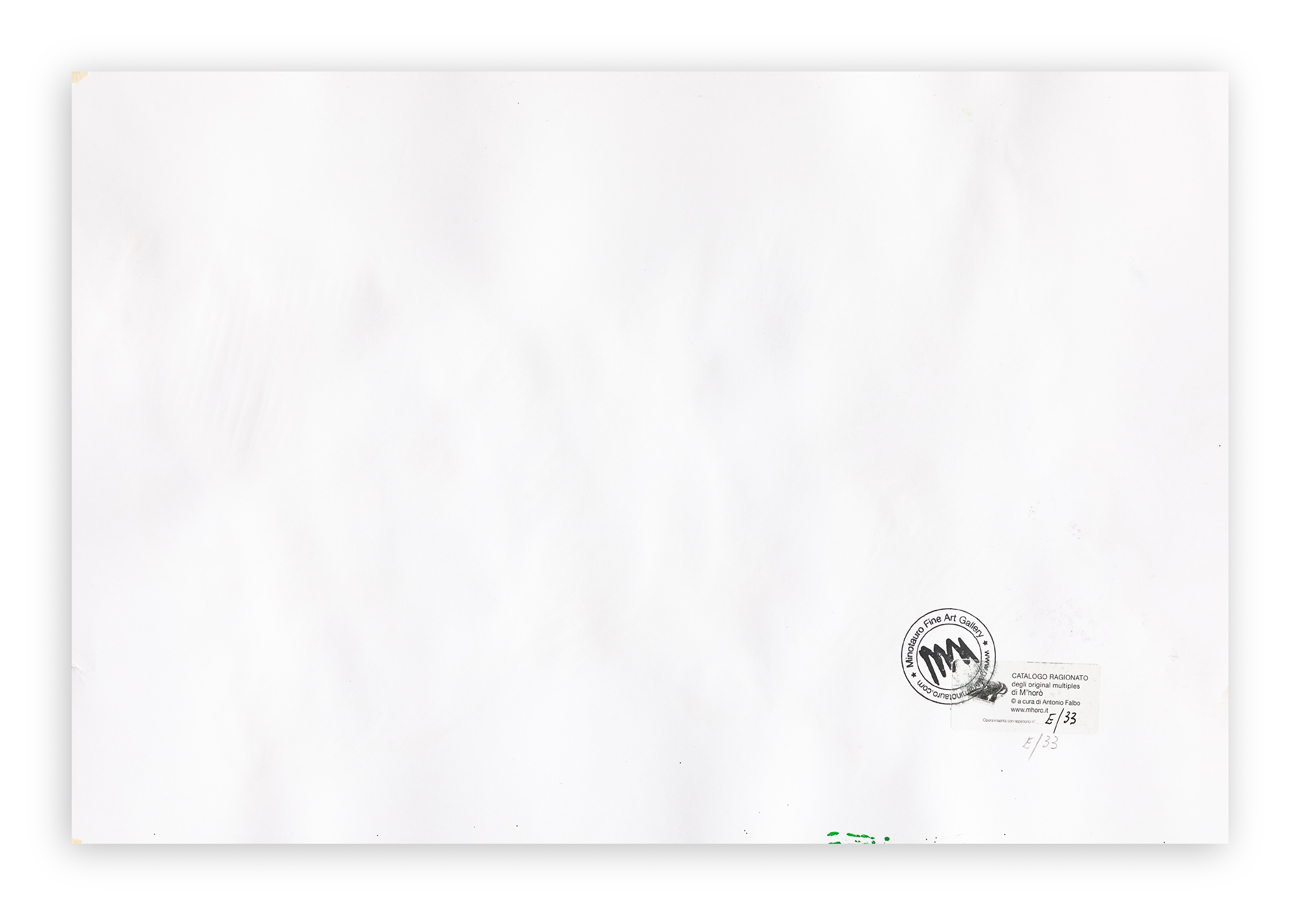 Etichetta Catalogo Ragionato degli original multiples di M'Horò, con numerazione (Esemplare E33)