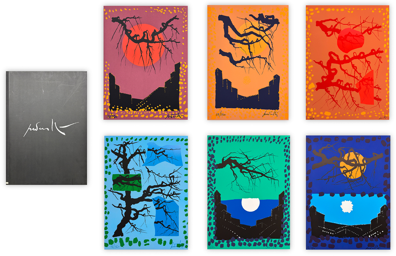 Cartella contenente 6 serigrafie di Cesare Peverelli ed un testo di Patrick Waldberg