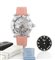 Cassa in acciaio con fondello chiuso da viti, lunetta graduata e girevole, due vetri zaffiro con 3 pesci mobili in brillanti e zaffiri rosa più 3 brillanti. Quadrante in madreperla con indici e lancette luminescenti, secondi al centro e data tra il 4/5. Movimento al quarzo. Quadrante, cassa e movimento firmati. Completo di quadrante nero supplementare, 4 cinturini in caucciù, rosa, bianco, azzurro e nero, fibbia in acciaio originale.