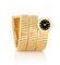 Cassa in oro giallo 18 kt con logo inciso sulla lunetta e vetro zaffiro, bracciale a triplo giro in oro giallo 18 kt. Quadrante nero con indici in brillanti. Movimento al quarzo. Quadrante, cassa, movimento e bracciale firmati. Completo di astuccio e certificato del 02/2001.