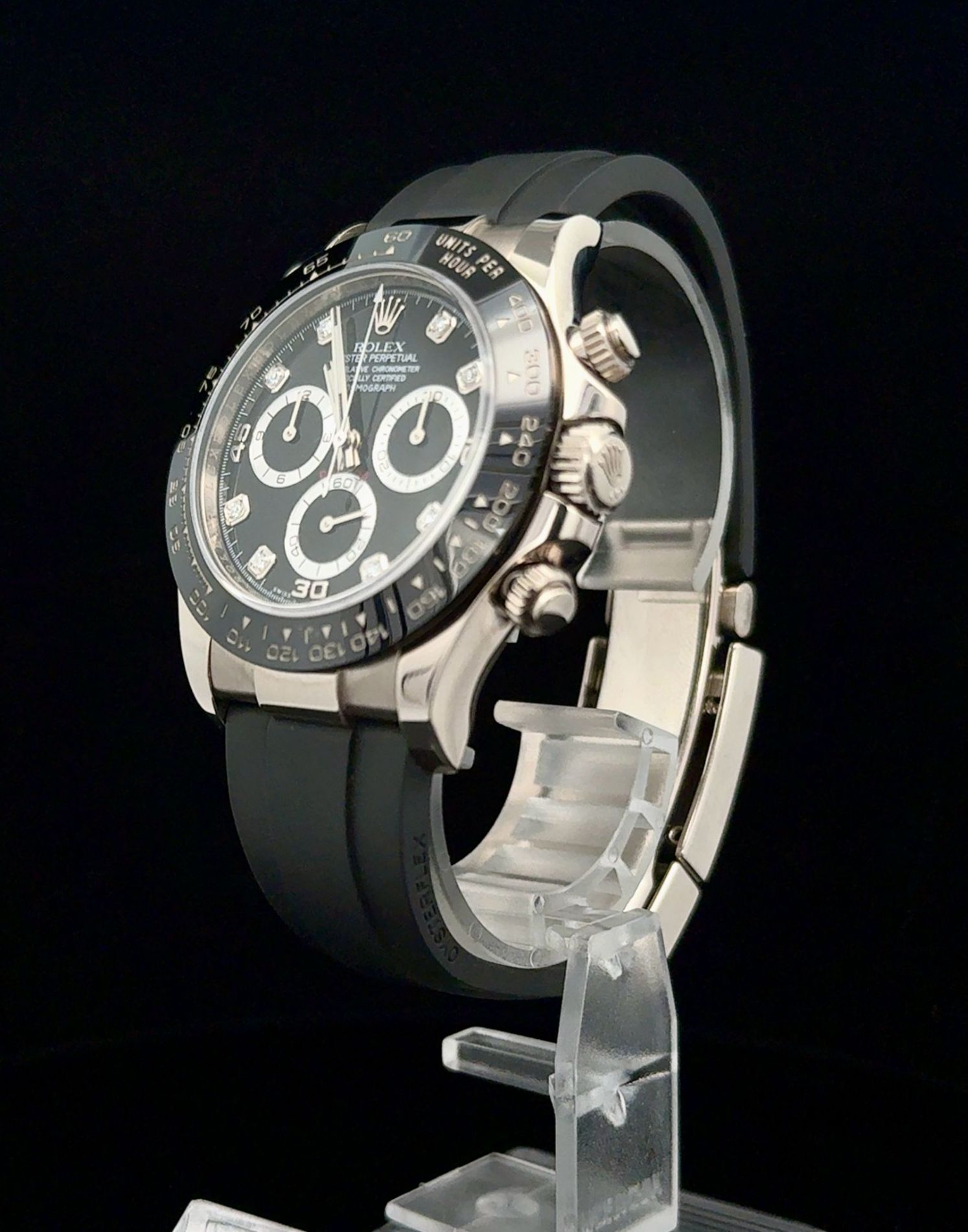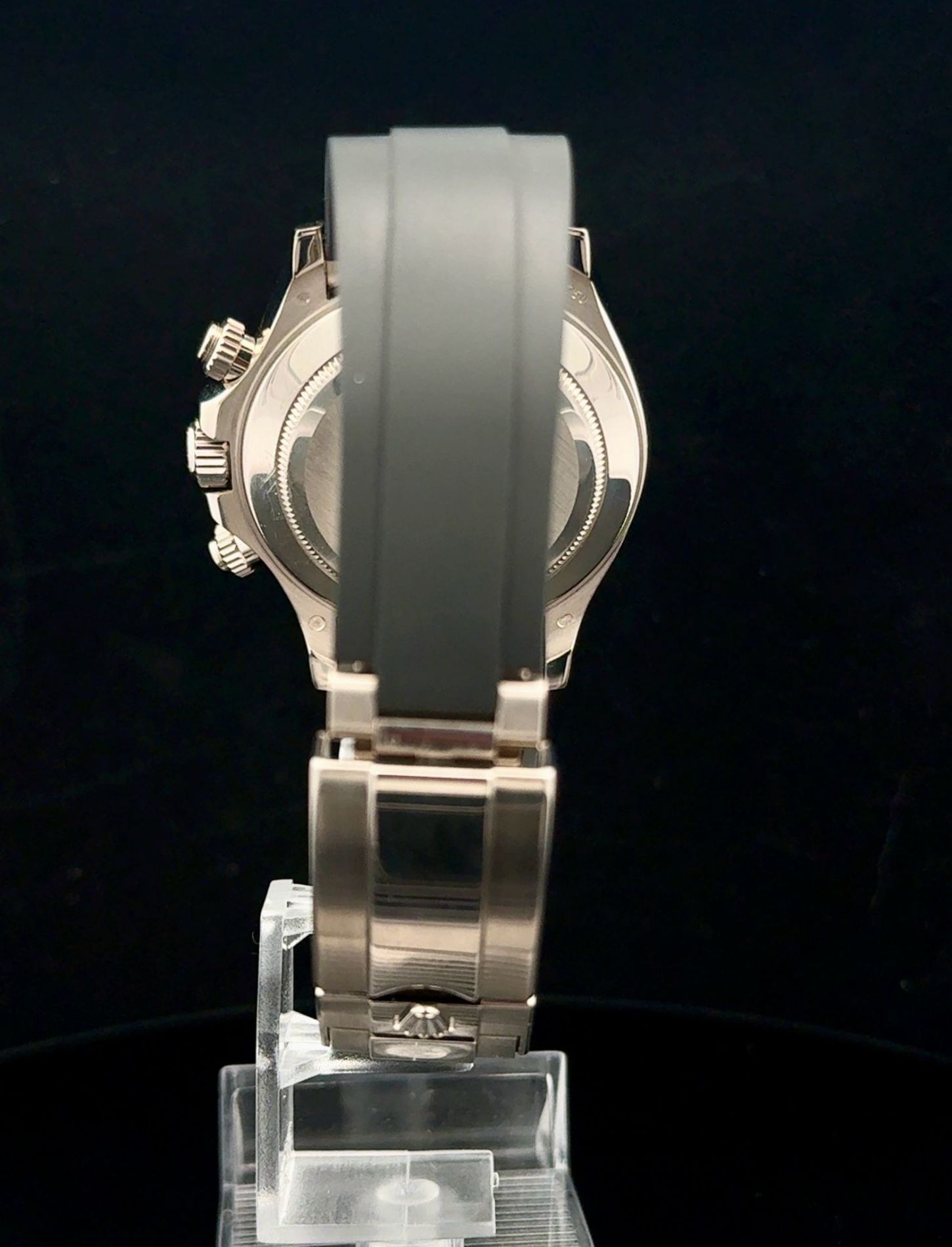 Marca Rolex Modello (Orologio) Daytona Numero di referenza 116519 Carica Automatico Materiale della cassa Oro bianco Anno di produzione 2019 anno approssimativo Corredo documenti originali Rolex, no box Carica Automatico Cassa Materiale della cassa Oro bianco Diametro 40 mm Impermeabile 10 ATM Materiale lunetta Oro bianco Vetro Vetro zaffiro Quadrante Bianco Doppio cinturino blu montato e marrone nuovo blisterato Chiusura Déployante Materiale chiusura Oro bianco Funzioni Cronografo