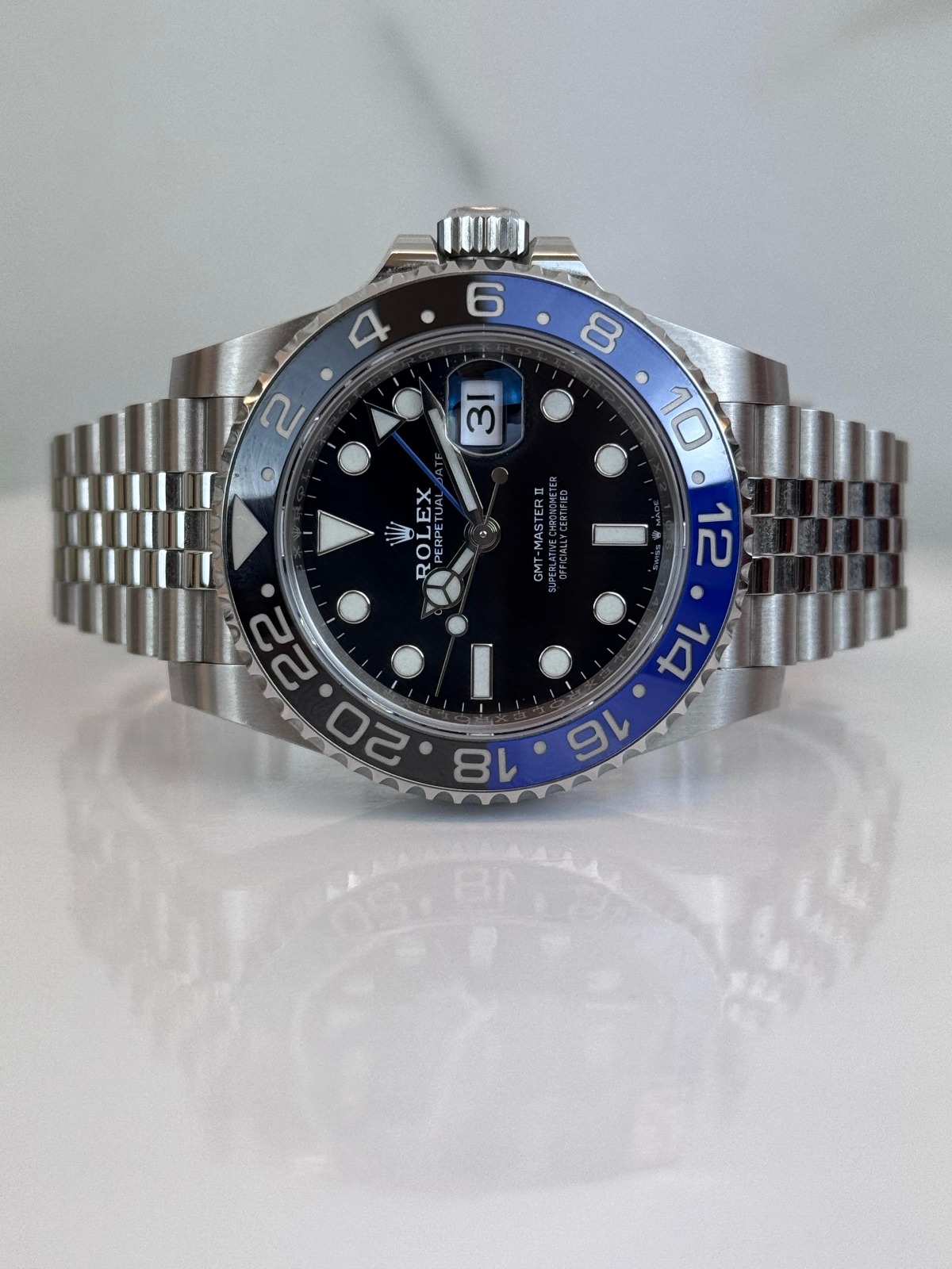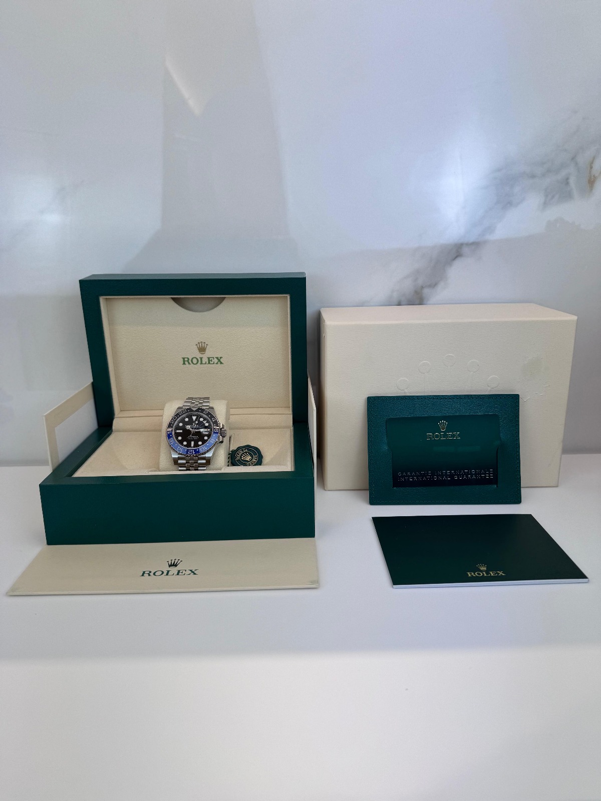 Marca Rolex Modello (Orologio) GMT-Master II Numero di referenza 126710BLNR Carica Automatico Materiale della cassa Acciaio Materiale cinturino Acciaio Anno di produzione 2022 pari al nuovo documenti originali, box originale Carica Automatico Materiale della cassa Acciaio Diametro 40 mm Impermeabile 10 ATM Materiale lunetta Ceramica Vetro Vetro zaffiro Quadrante Nero Numeri sul quadrante Senza numeri Cinturino Materiale cinturino Acciaio Colore cinturino Acciaio Chiusura Déployante Materiale chiusura Acciaio Funzioni Data