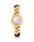 Cassa in oro giallo 18 kt con lunetta bombata, ansa centrale a treccia. Quadrante in madreperla con indici e numeri romani applicati. Movimento al quarzo. Quadrante, cassa e movimento firmati. Cinturino e fibbia in oro giallo 18 kt originali.