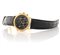 Cassa in oro giallo 18 kt con pulsanti tondi e terzo pulsante al 10, vetro zaffiro. Quadrante nero con numeri romani applicati, contatore a 30 minuti e 12 ore, data al 6. Movimento a carica automatica. Quadrante, cassa e movimento firmati. Completo di fibbia in oro giallo 18 kt originale.
