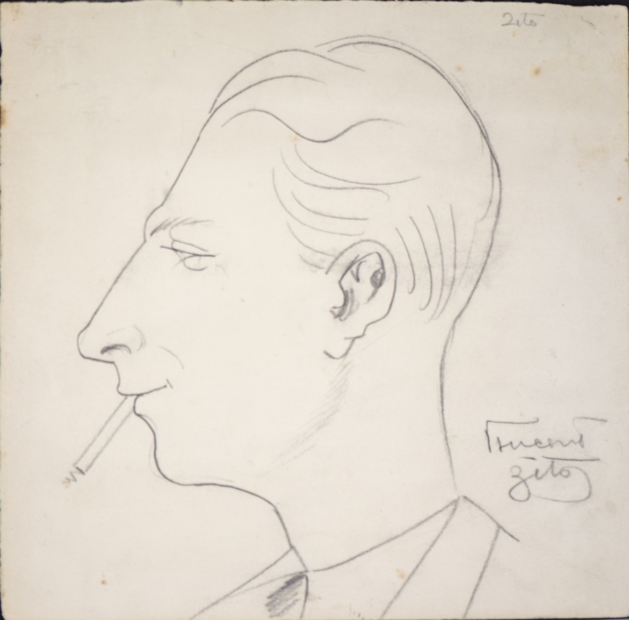 Zito Vincenzo Maria (1900 - 1966) Ritratto di Mike Bongiorno. 1950. grafite su carta. Cm 21,00 x 21,00. Ritratto sotto forma di caricatura di un giovanissimo Mike Bongiorno da parte del grande disegnatore e caricaturista di Palermo celebre per il libro a fumetti dove illustrava i pensieri dei cani.