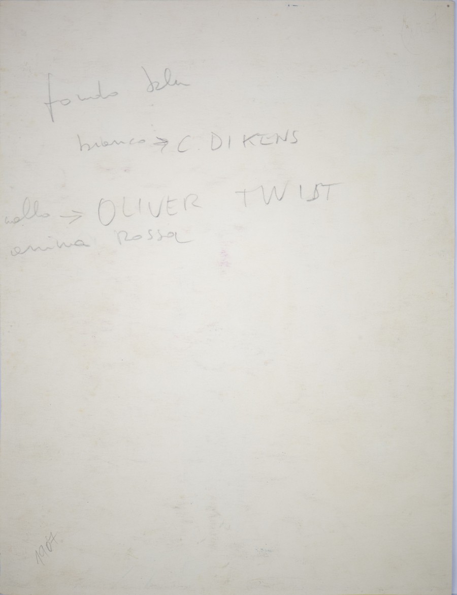 Indicazioni sparse a matita sul retro per la pubblicazione