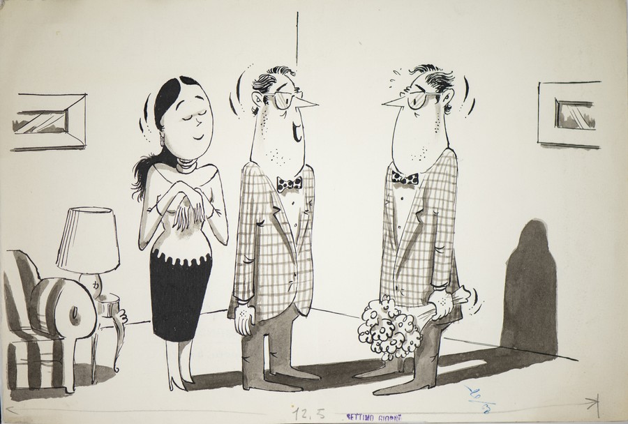 Bortolato Mario (1926 - 2019) Fidanzamento. China su carta. Cm 33,00 x 22,50. Collezione Sergio Cereda