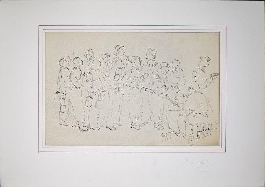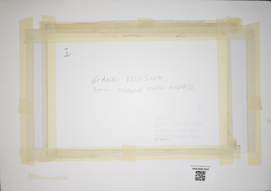 Novischi Gianni Il giornale delle forze armate. China su carta. Cm 32,50 x 21,00. Sul retro descrizione in polacco in basso a destra