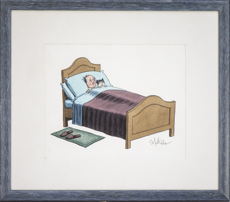 Matticchio Franco Io e il gatto. 1989. acquarello su carta. Cm 25,00 x 21,00. firma a matita in basso a destra