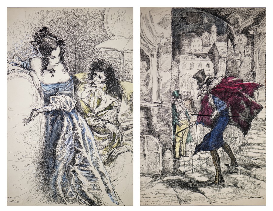 Regosa Gastone - Paganini VI Puntata- Due Illustrazioni per il Radiocorriere TV.