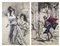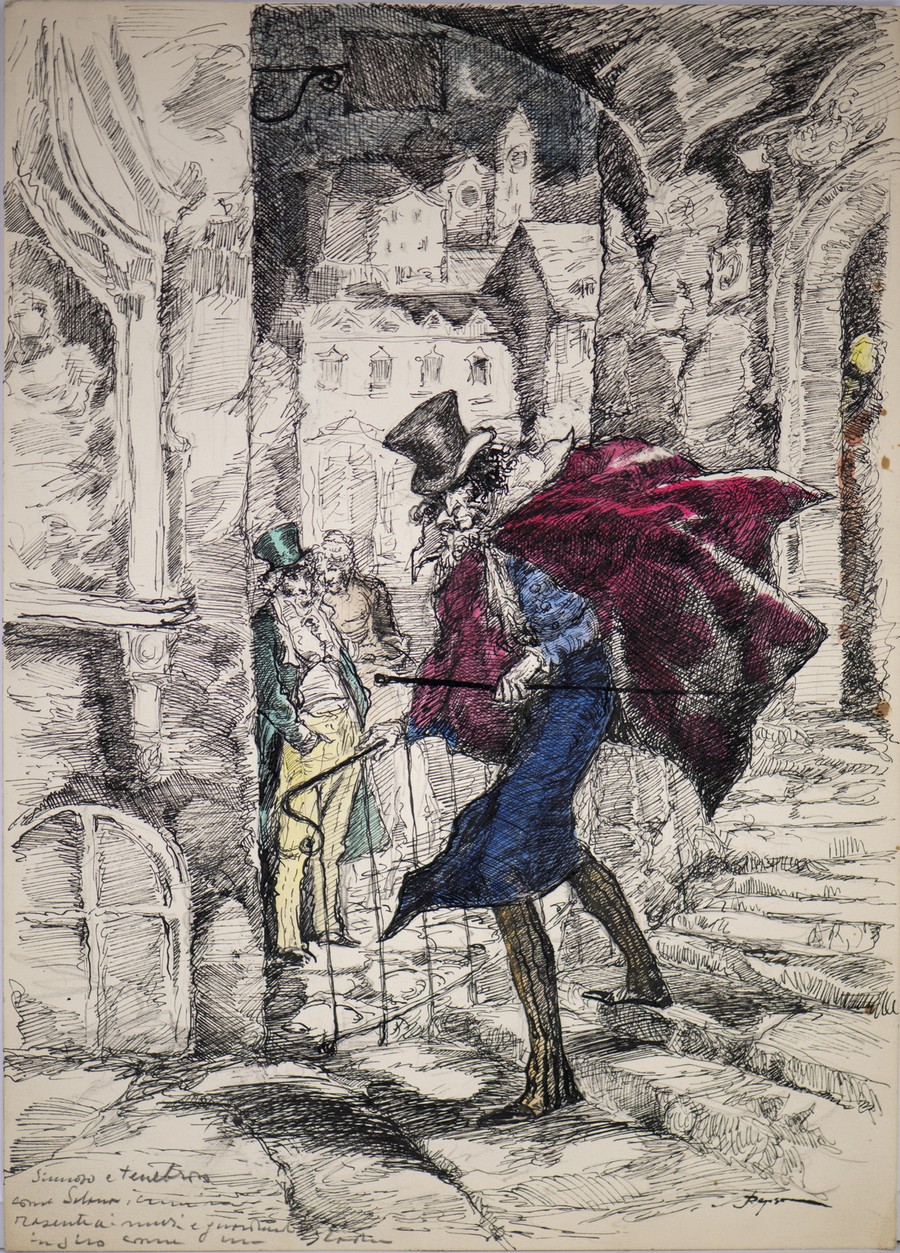 Regosa Gastone Paganini VI Puntata- Due Illustrazioni per il Radiocorriere TV. 1957. china acquarellata su carta. Cm 25,00 x 35,00. Sul retro timbro Archivio ERI n 36 del 19/9/1957 pagina 10