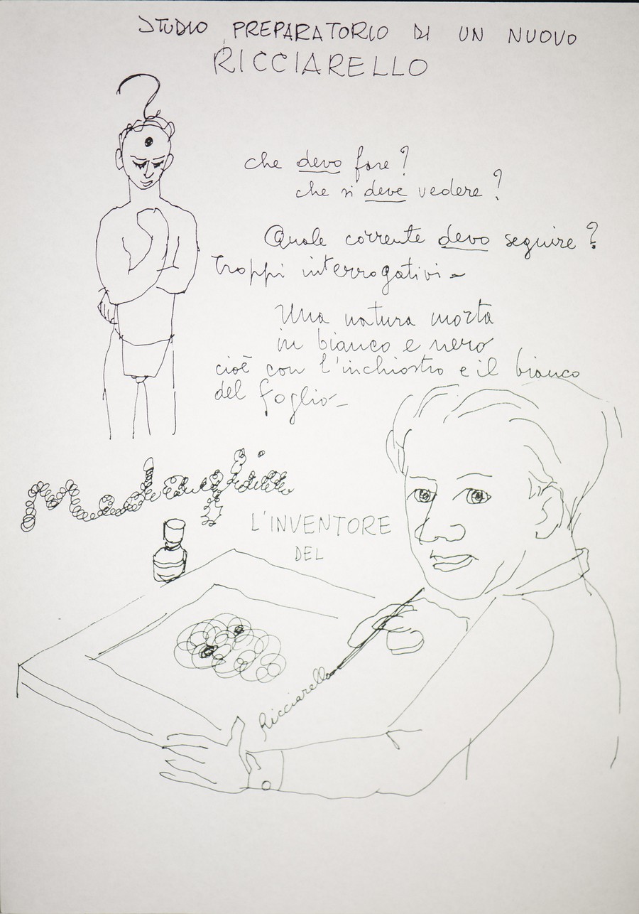 Medaglia Claudio (1919 - 1997) Senza titolo. China su cartoncino. Cm 23,50 x 35,50. Illustrazione con la tecnica del "ricciarello".
