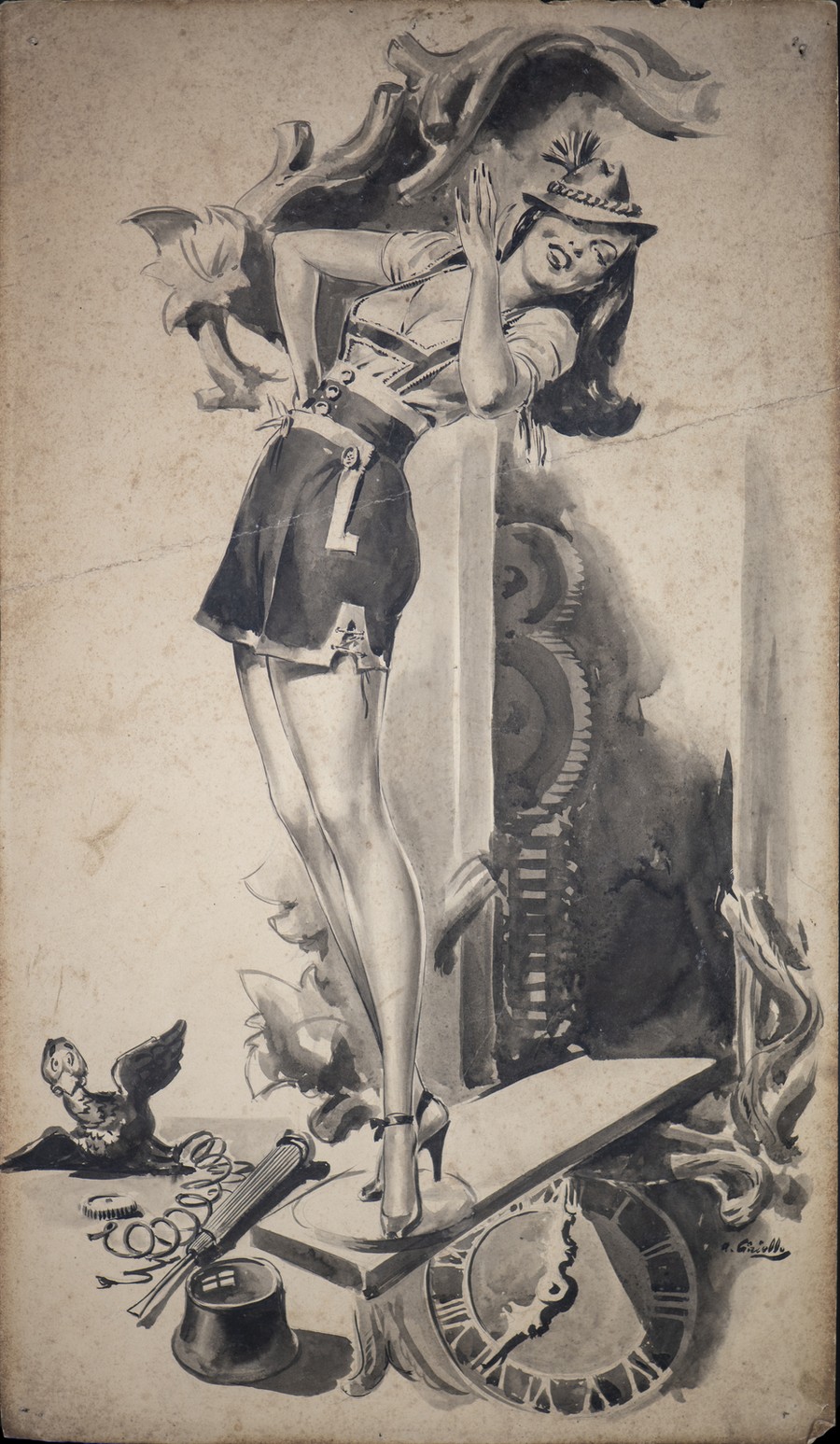 Ciriello Averardo (1918 - 2016) Copertina per la rivista 7Sette. 1947. Acquerello su cartoncino. Cm 30,00 x 49,00. Copertina per la rivista 7Sette con la sua celebre Signorina