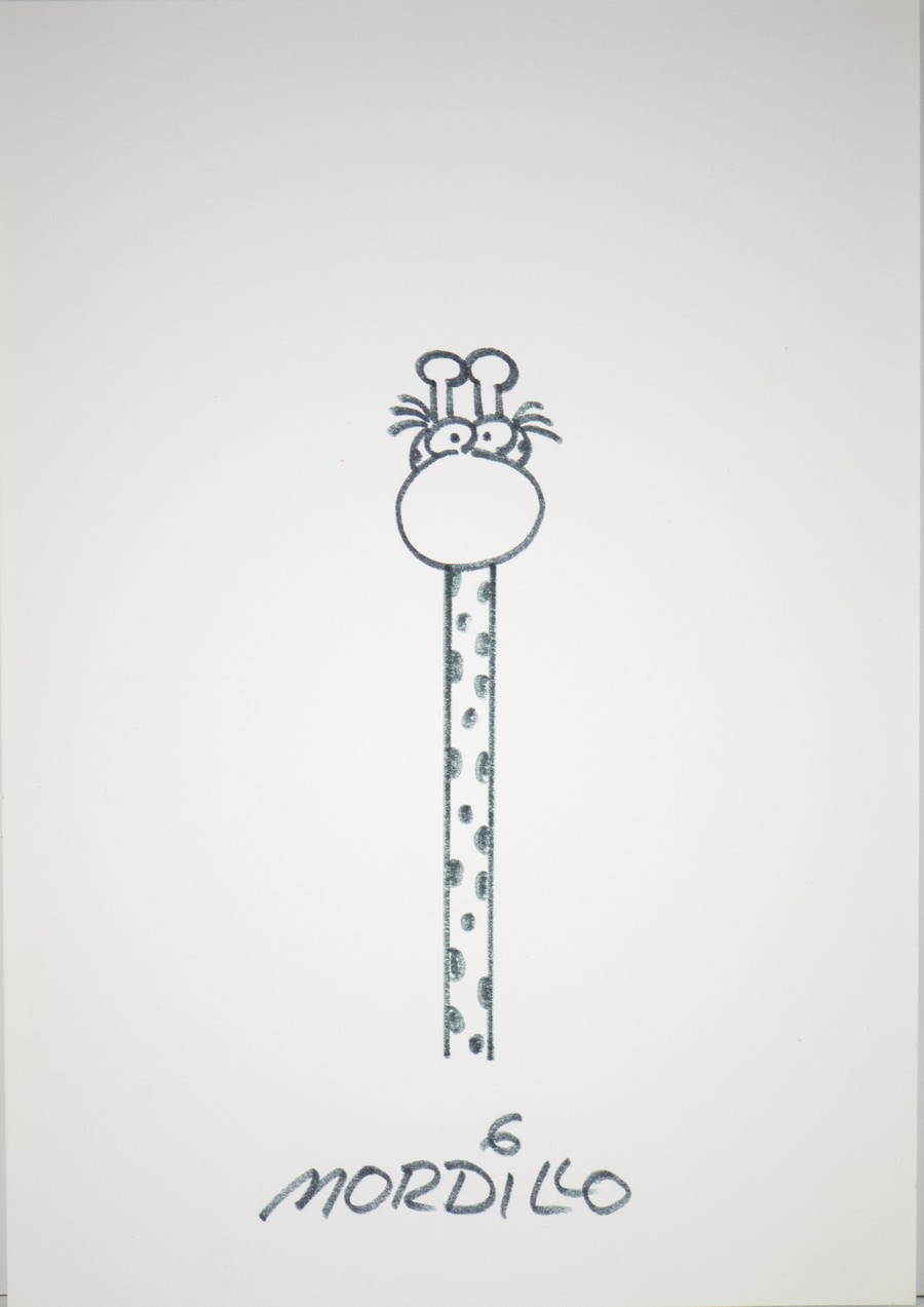 Mordillo Guillermo (1932 - 2019) Giraffa. pennarello su carta. Cm 15,00 x 21,00. Opera firmata in basso a centro