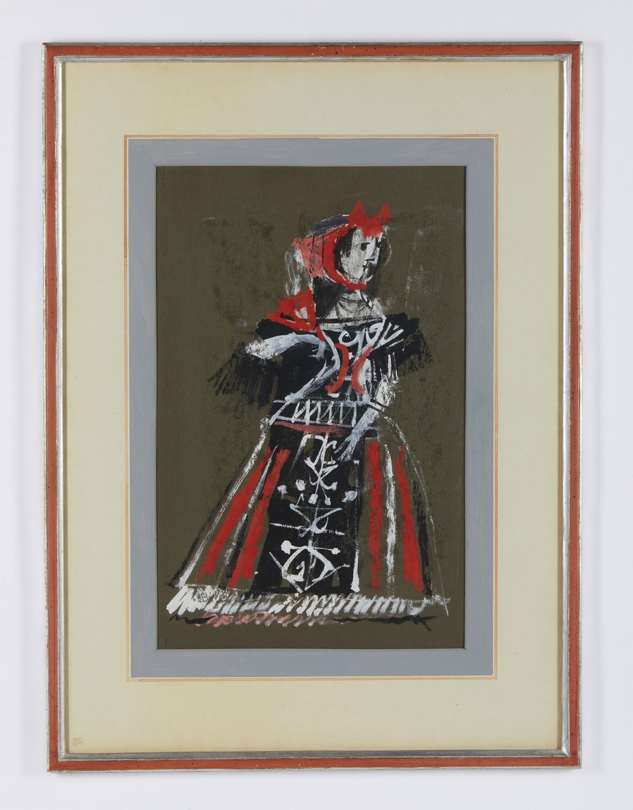 LUZZATI EMANUELE (1921 - 2007) DAMA. tempera e pastello su carta. Cm 30,00 x 46,00. l'opera è accompagnata da archiviazione Luzzati Museum
