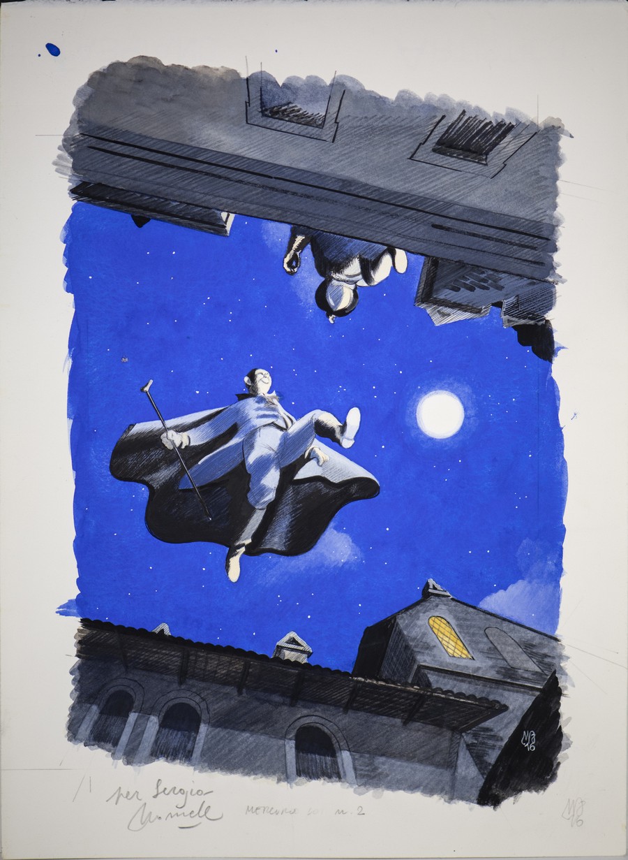 FIOR MANUEL Mercurio Loi-Tempo di notte. 2016. acquarello su carta. Cm 28,00 x 38,00. Tavola pubblicata su Mercurio Loi n 2 Tempo di notte, siglata in basso a destra