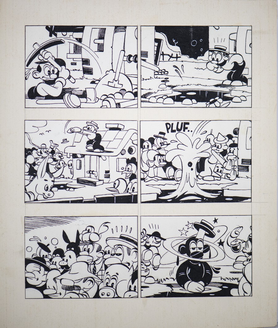 Baggioli Bizen Zenobio pagina di fumetto. 1950. China su carta. Cm 22,00 x 25,00. sul retro nome dell'artista
