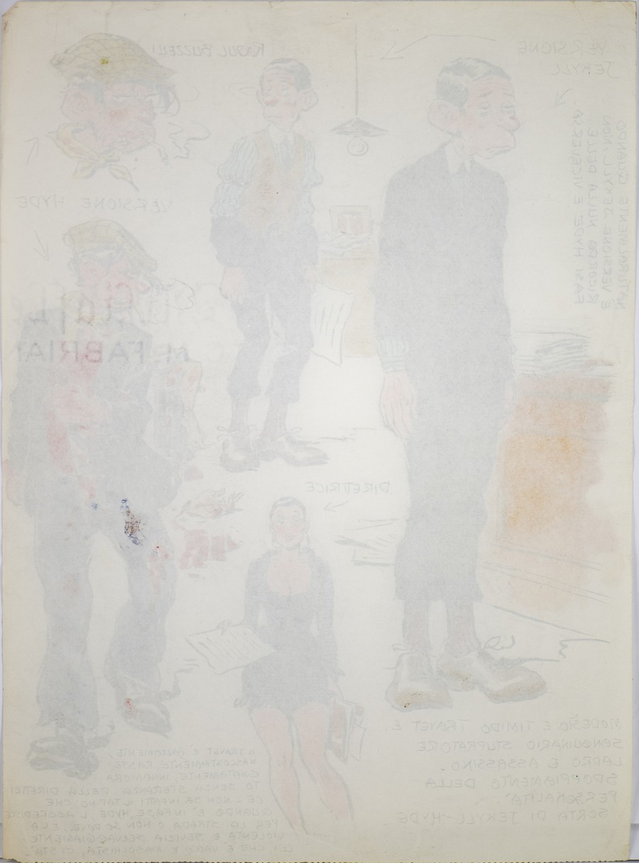 Buzzelli Raoul (1932 - 1982) Il dottor Jekyll.... . China e tempera su carta. Cm 23,50 x 32,00. (Collezione Accatino)