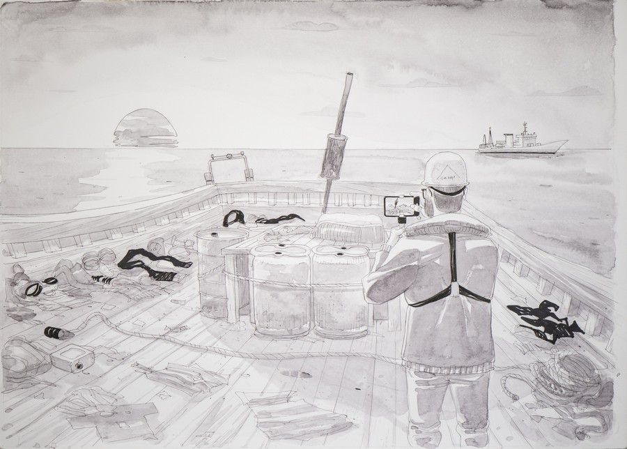 Bonaccorso Lelio (n. 1982) Salvation. 2018. China e acquarello su carta. Cm 49,00 x 34,50. firma sul retro