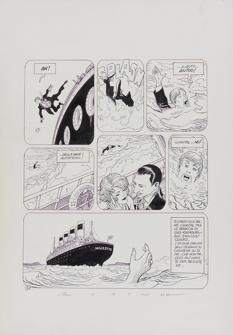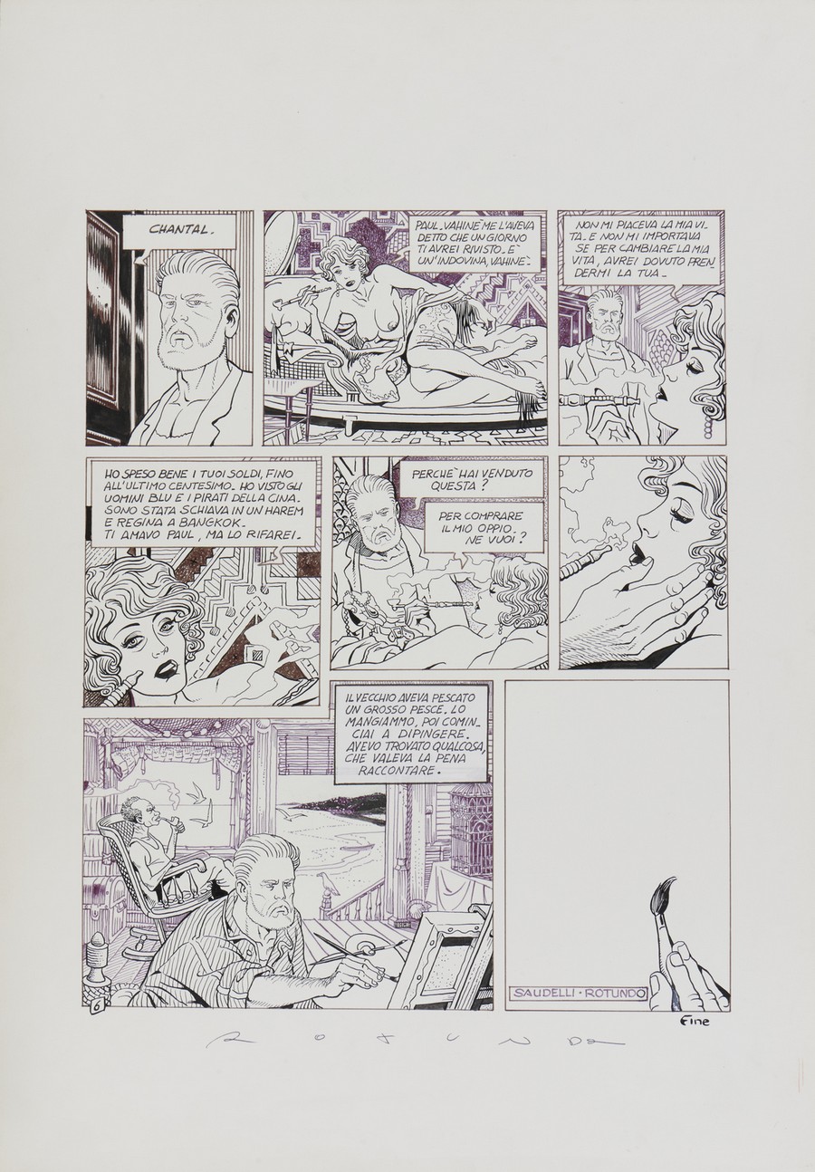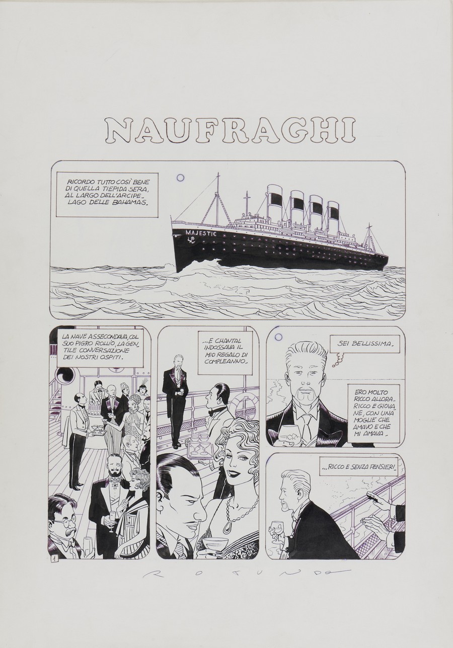 Saudelli Franco Franco Saudelli e Massimo Rotunno- Naufraghi. China su carta. Cm 35,00 x 50,00. Una storia completa in 6 tavole
