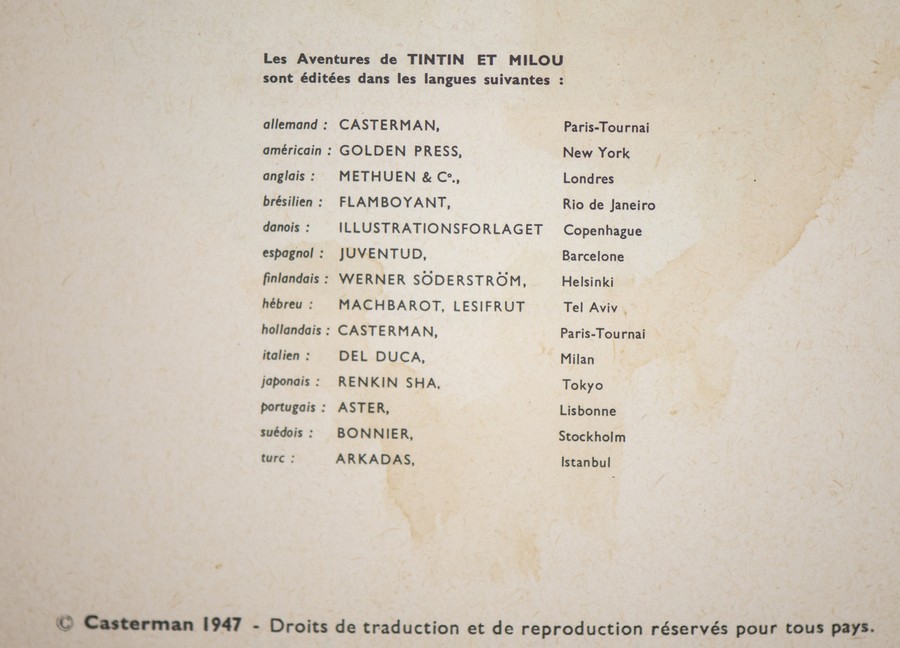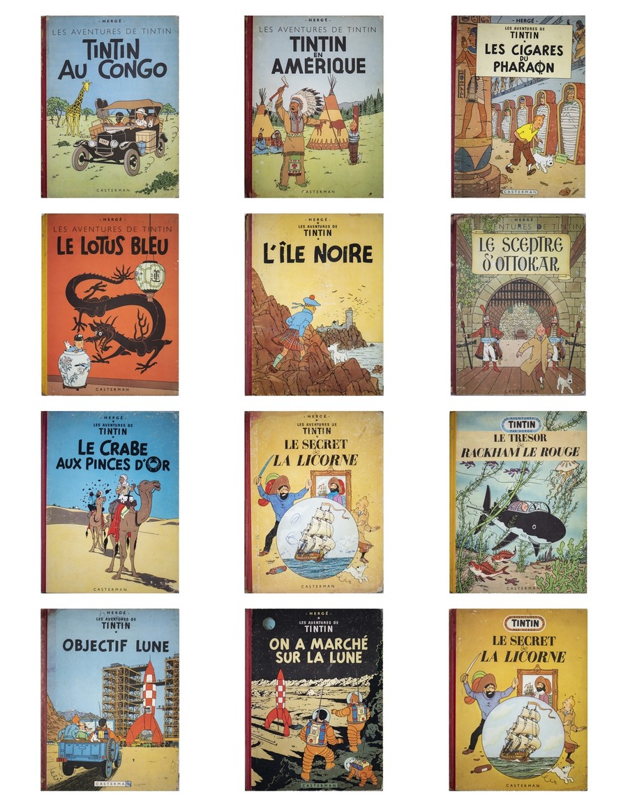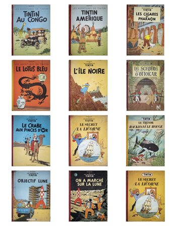 ELENCO DEI VOLUMI: TinTin Au Congo, On a marche sur la lune, Objectif Lune, Le Lotus Blue, Le Crabe aux pinces d'or, Les Cigares du Pharaon, Le sceptre d'ottokar, TinTin en Amerique, Le secret de la licorne, Le tresor de Rackham le rouge, Le secret de La licorne, L'Ile noire.