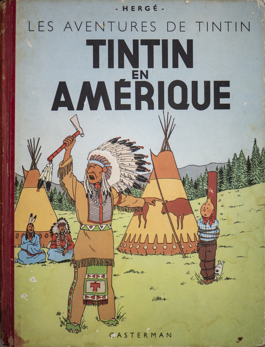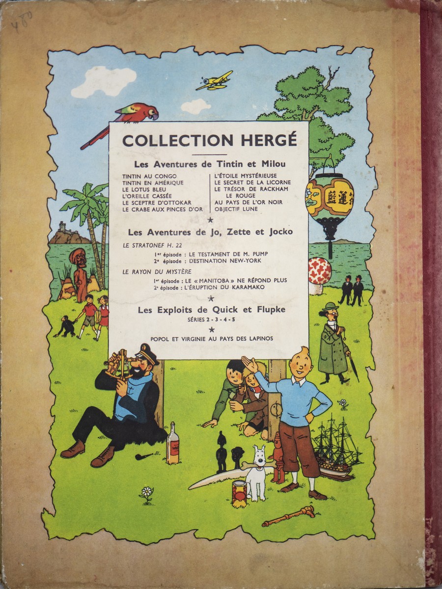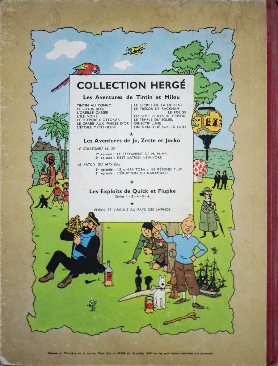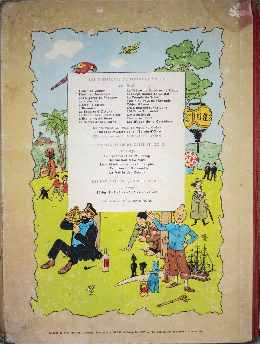 UNO ALBUMS DE HERGÉ, UNO LES AVENTURES DE TINTIN ET MILOU COME DA FOTOGRAFIE FRONTE E RETRO. RITENIAMO EDIZIONE 1954/1955