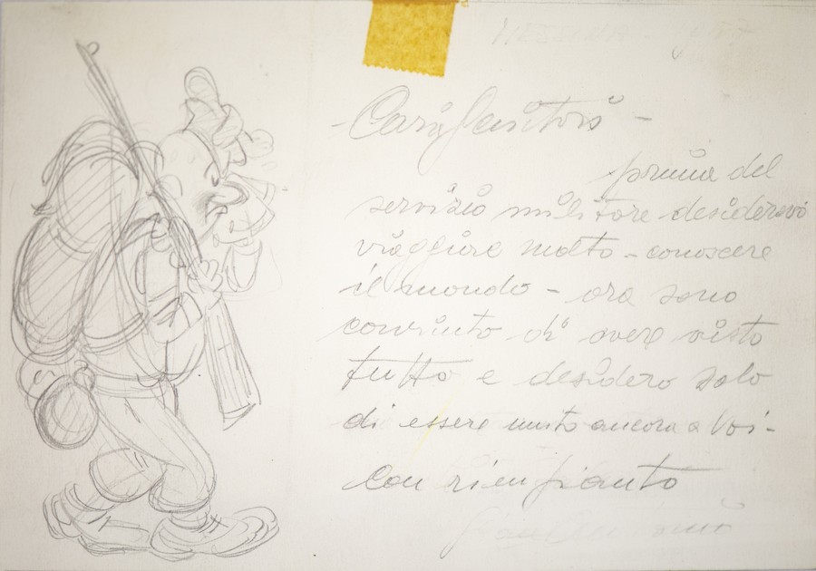 Si allega cartolina su carta preparatoria con testo dell'autore