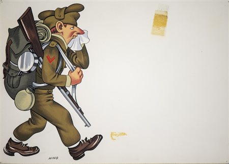 Palazzo Nino (1912 - 1979) Bozzetto per cartolina. 1950. Tempera su cartoncino. Cm 25,50 x 18,50. firma in basso a sinistra.